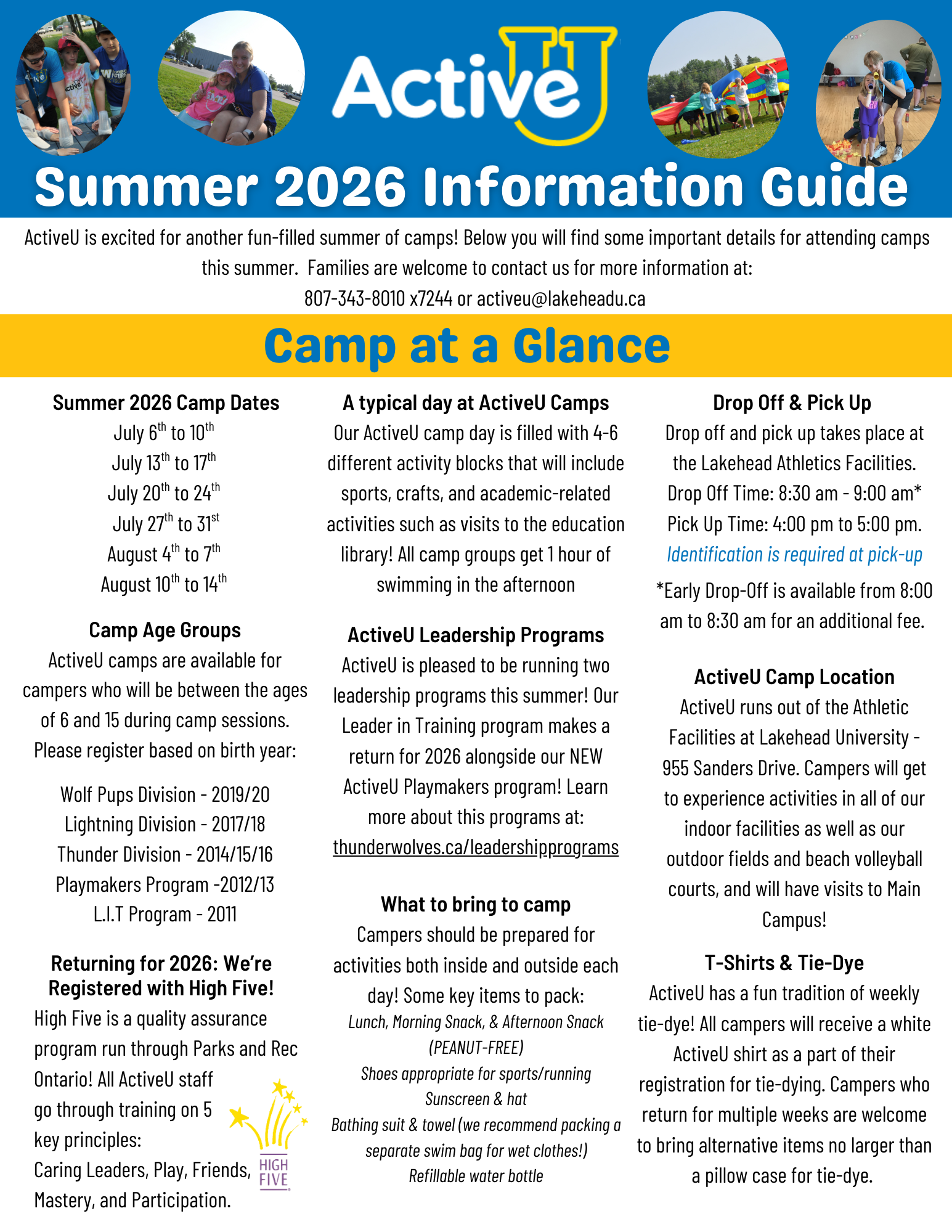 If you have any questions or concerns please feel free to contact us at 807-343-8010 x7244 or activeu@lakeheadu.ca